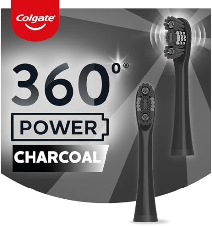 Colgate 360 Power Charcoal Replacement Toothbrush Heads, Works with Any 360 Battery Toothbrush, Features Soft Bristles and a Rubber Polisher on Each Replacement Head, 2 Pack