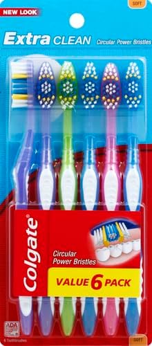 Colgate Extra Clean Toothbrush, Soft Toothbrush for Adults, 6 Count (Pack of 1)