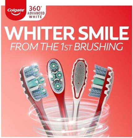 Colgate 360 Optic White Whitening Toothbrush, Adult Soft Toothbrush with Whitening Cups, Helps Whiten Teeth and Removes Odor Causing Bacteria, 4 Pack