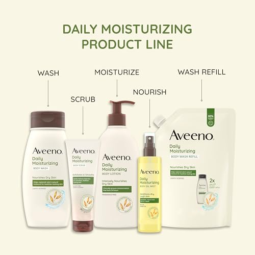 Aveeno Daily Moisturizing Body Wash is a body wash for dry and sensitive skin, formulated with prebiotic oat to gently cleanse and nourish, and leaves skin feeling soft, smooth, and hydrated. This allergy-tested body wash for women and men is lightly scented and free of parabens, dyes, and soaps. Suitable for daily use. The clean rinsing body wash provides a gentle cleansing experience that leaves skin feeling moisturized long after showering. Designed for those seeking a sensitive skin body wash, and doubles as a rich shave gel for silky smooth legs, offering versatility for your daily routine. From a dermatologist recommended brand for over 70 years, this body wash for dry skin pairs perfectly with Aveeno Daily Moisturizing Body Lotion to help lock in moisture for 24 hours, supporting a complete skincare regimen. Each twin pack of 18 fluid ounce bottles provides a convenient supply for daily routines, making it a highly effective body wash and shower gel for dry skin. The formula is crafted to be gentle on skin and is suitable for sensitive skin, delivering a light, fresh scent that is not overpowering. Simply apply to wet skin, lather, and rinse for skin that feels clean, refreshed, and healthy-looking after every wash. Aveeno Daily Moisturizing Body Wash stands out as a sensitive skin body wash and a body wash for women and men, offering a comforting shower experience and supporting skin’s natural moisture barrier. For best results, follow with Aveeno Daily Moisturizing Body Lotion to maintain 24-hour hydration and keep skin looking and feeling its best every day.