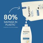 Gently cleanse and soothe itchy, dry skin with Aveeno Skin Relief Body Wash, for both women and men. This fragrance-free body wash features a soothing Triple Oat formula, perfect for sensitive skin, and helps preserve the skin’s natural moisture barrier. 93% of users report that this body wash leaves their itchy, dry skin feeling soothed and moisturized. From a dermatologist-recommended brand for over 70 years, it is allergy-tested, free of fragrances, parabens, dyes, and soaps, making it suitable for daily use. To apply, squeeze onto a wet pouf, washcloth, or hands, working into a rich lather before rinsing. This body wash also doubles as a shave gel for silky legs. For best results, follow with Aveeno Skin Relief Moisturizing Lotion to lock in moisture for 24 hours. Use the refill pouch to replenish your 18 fl. oz Aveeno Skin Relief Body Wash bottles