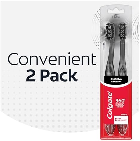 Home DANTAL CARE Colgate 360 Vibrate Charcoal Battery Operated Toothbrush Pack, Soft with 1 AAA Battery Included, Black, 2 Count