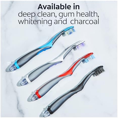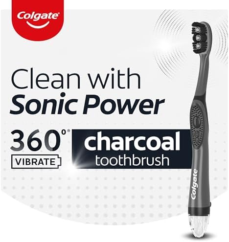 Colgate 360 Vibrate Charcoal Battery Operated Toothbrush combines the power of a battery operated toothbrush with the familiarity of a manual toothbrush head for a refreshing teeth cleaning experience. This full mouth vibrating toothbrush pack uses soft Floss Tip bristles* to clean between teeth. Each black toothbrush is perfect for travel because they are battery powered, so they can be used wherever you go (1 AAA battery included). Experience a healthier whole mouth clean** with just a press of a button with the Colgate 360 battery powered toothbrush. This disposable electric toothbrush pack cleans the teeth, cheeks, tongue, and gums so you can enjoy a whole mouth clean with every brush. The soft, vibrating toothbrush bristles deliver powerful cleaning using sonic technology. Clean better*** with vibrating bristles powered by sonic technology with the Colgate 360 disposable electric battery charcoal toothbrush. *does not replace flossing **vs. brushing teeth alone with an ordinary flat trim toothbrush ***vs. a manual toothbrush