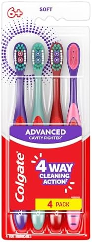 Colgate Kids Toothbrushes with Extra Soft Bristles are the perfect kids toothbrushes to encourage good oral habits early on! Designed for children ages 6 and up, each Advanced Cavity Fighter* toothbrush in this kid toothbrush pack is designed to make brushing fun and easy. Each of the kids toothbrushes feature extra soft cleaning bristles and polishing cups that help remove more plaque and stains than an ordinary flat-trim toothbrush. Plus, this extra soft toothbrush for kids is great for children with both baby and adult teeth and the soft tongue cleaner on the back of the small toothbrush head helps clean beyond teeth. These Colgate extra soft toothbrushes for kids feature multi-height bristles that are designed for deep cleaning. The extra soft toothbrush bristles provide effective yet gentle cleaning, making it a great manual toothbrush for kids. In addition, each of these kids toothbrushes feature a cheek and tongue cleaner on the back which help remove over 96% more bacteria** to help control bad breath. *when used with Colgate Cavity Protection toothpaste **overall bacteria vs. brushing teeth alone with an ordinary flat-trim toothbrush