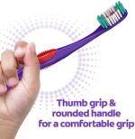 The multi-height soft toothbrush bristles clean big and small teeth, from baby teeth to growing adult teeth