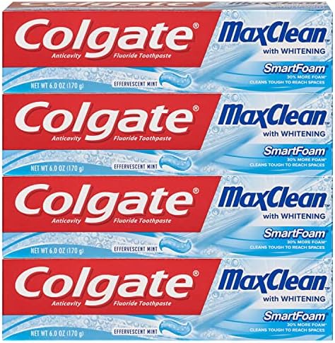Colgate MaxClean SmartFoam is designed with a special formula that foams 30% more as you brush (vs. a leading fluoride toothpaste). It gets in between teeth and around gums, helping to remove bad-breath germs even in tough to reach spaces. Colgate Max Clean with Whitening Foaming Toothpaste also fights cavities while the Effervescent Mint flavor helps freshen your breath.