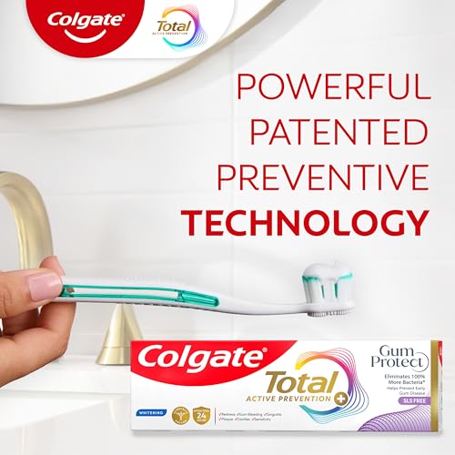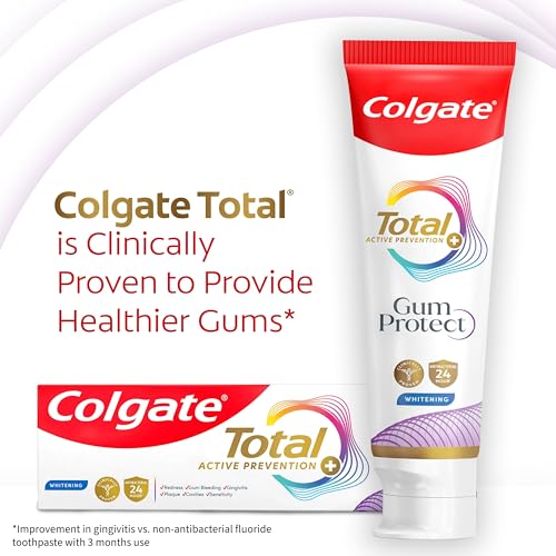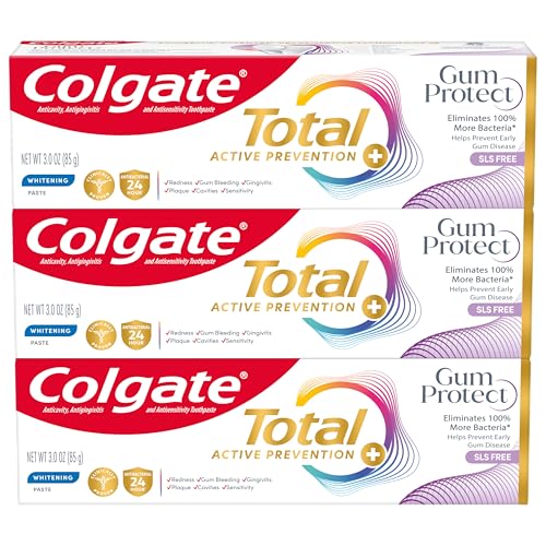 Home DANTAL CARE Colgate Total Active Prevention Gum Protect Whitening Toothpaste, Whitening Gum Toothpaste for Inflammation, Redness, Bleeding, Irritation, and Sensitivity, SLS Free, 3 Pack, 3.0 oz