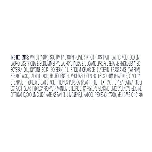Searching for a little more balance in life? Take a shower! Our Dove Rebalancing Body Wash with White Peach & Rice Milk has a rich, creamy formula and will moisturize and care for your skin as it calms and cares for your senses. Think of it as perfectly balanced self-care. Millions of 24hr Renewing MicroMoisture️ droplets that are specially designed to absorb deeply and work with your skin’s natural renewal process will help retain and boost moisture. Its unique combination of skin-natural nourishers and skin-loving plant-based moisturizers will give you soft, rejuvenated, and healthy-looking skin that lasts all day. Another unique combination? Its beautifully balanced scent that will rebalance your outlook with the positivity of peach and luminous woodsy musks as the formula leaves your skin feeling peachy-soft. Win-win. To use this rich, creamy body wash, squeeze into palms or loofah, massage into skin, savor the peachy scent, let the lather soak in, rinse and step out of shower feeling rebalanced and ready to take on another day. Who else would you trust, but the dermatologist-recommended brand (us!) to deliver a long-lasting, moisturizing body wash? Our Rebalancing White Peach & Rice Milk Body Wash is vegan and Dove is PETA approved, meaning we do not test on animals anywhere in the world. Plus, it’s sulfate-free, paraben-free, and packaged in 100% recycled bottles.