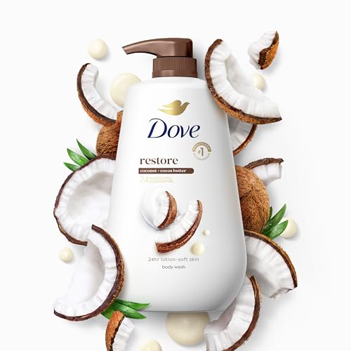 Your skin works hard taking care you every day – it’s time to return the favor. (Cue skin silently saying yes!) Bring it back to life with our rich and creamy Dove Restoring Coconut & Cocoa Butter Body Wash. Millions of hard-working 24hr Renewing MicroMoisture droplets that are specifically designed to absorb deeply and work with your skin’s natural renewal process will help retain and boost moisture. While skin-natural nourishers and skin-loving plant-based moisturizers give you gently cleansed, nourished, healthy-looking skin that stays that way all day. Restored, rebooted, renewed. And rewarded! With a creamy coconut fragrance highlighted by soothing vanilla, decadent cacao, and fresh almonds that’ll have you going loco for coco(a) twice over. To use this rich, creamy body wash, squeeze into palms or loofah, massage into skin, give it a little love, let the lather soak in, rinse and step out of shower feeling restored and silky-smooth-like-butter all over. Who else would you trust, but the dermatologist-recommended brand (us!) to deliver a long-lasting, nourishing body wash? Our Restoring Coconut & Cocoa Butter Body Wash is vegan and Dove is PETA approved, meaning we do not test on animals anywhere in the world. Plus, it’s sulfate-free, paraben-free, and packaged in 100% recycled bottles.