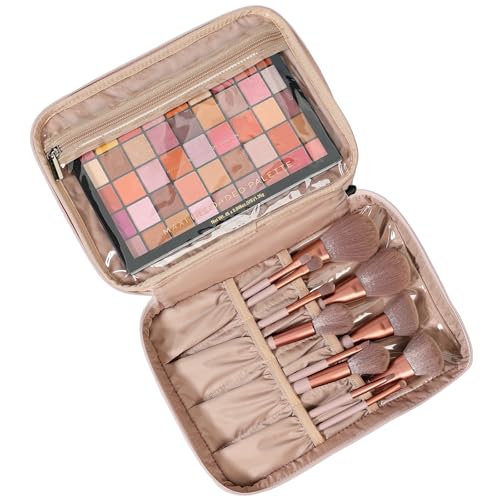 HOLDS SUBSTANTIAL MAKEUP BRUSHES – There are eight brush slip pockets on the top compartment to fit different sizes of brushes. The clear plastic lining provides an easy-to-clean surface