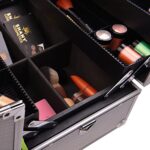 Home Nail Polish SHANY Essential Pro Makeup Train Case Cosmetic Box Portable Makeup Case Cosmetics Beauty Organizer Jewelry storage with Locks, Multi Compartments Makeup Box and Shoulder Strap – Silver